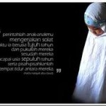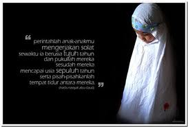 Artinya: Perintahlah anak kalian untuk shalat saat mereka berumur 7 tahun, pukullah mereka karena (meninggalkan) shalat saat mereka berumur 10 tahun dan pisahlah mereka dalam tempat tidur.(HR.Abu Daud)