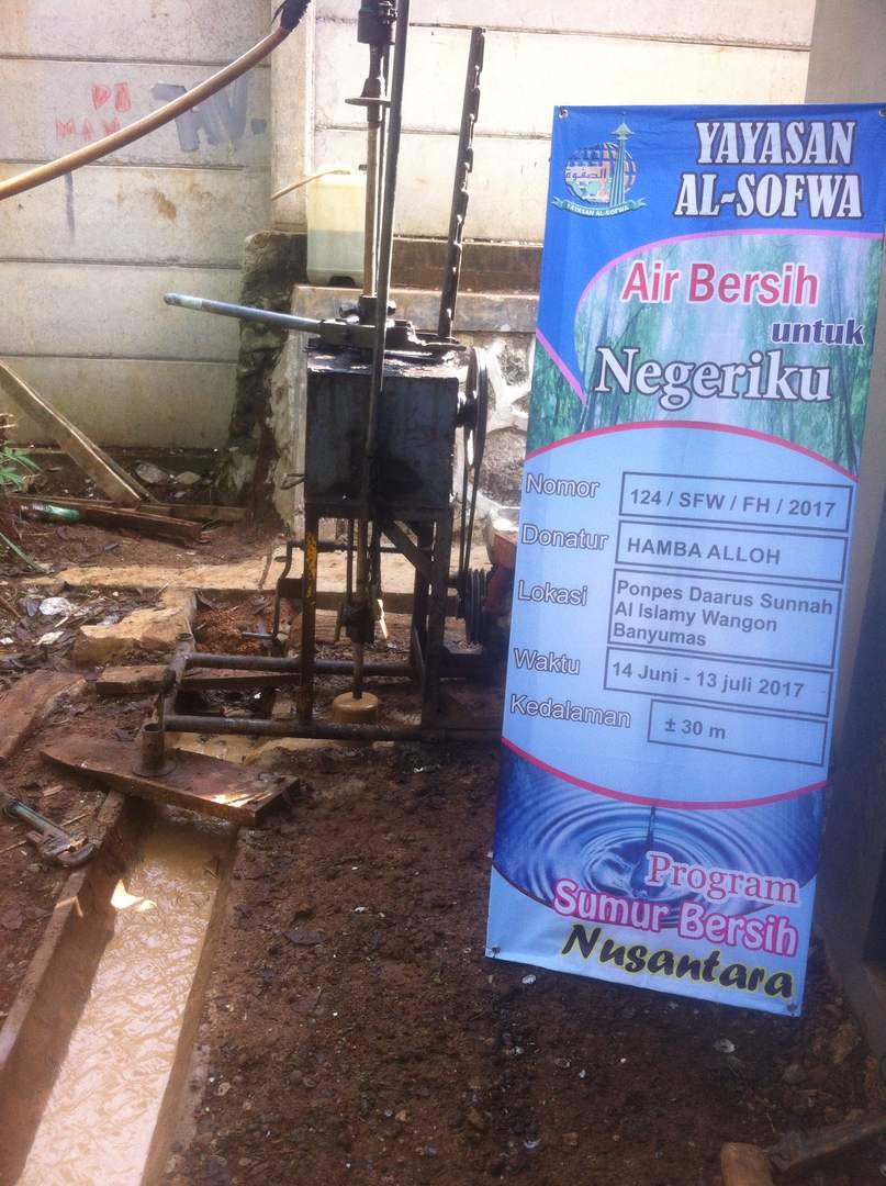 Bulan Ramadhan bukan berarti program sumur bersih Yayasan Al-Sofwa berhenti. Namun air adalah sumber kehidupan utama maka pengeboran dan pembuatan sumur tetap berlanjut. Termasuk di Pondok Pesantren Daarus Sunnah Al-Islamy Wangon yang Alhamdulillah sedang dalam pengerjaan.