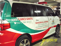 Al-Sofwa Sebuah mobil ambulans Suzuki APV Luxury bernomor polisi B 55O FWA yang berada di halaman Masjid Al-Sofwa menandai telah siapnya Program Ambulans Gratis melayani masyarakat. Khususnya bagi mereka yang membutuhkan layanan antar jenazah ataupun juga layanan antar orang sakit berobat.