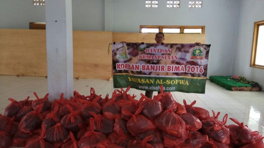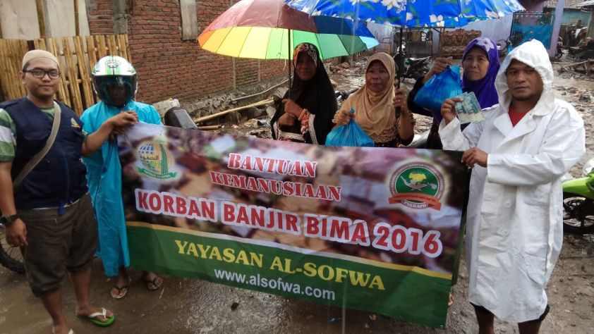 Melalui Departemen Sosial Yayasan Al-Sofwa mengutus satu relawan untuk menyalurkan bantuan kepada para korban banjir dengan bergabung dengan relawan-relawan yang lain di sana. Adapun total bantuan yang sudah disalurkan kepada para korban banjir Bima sebesar Rp. 50.000.000,-, dengan rincian sebagai berikut :