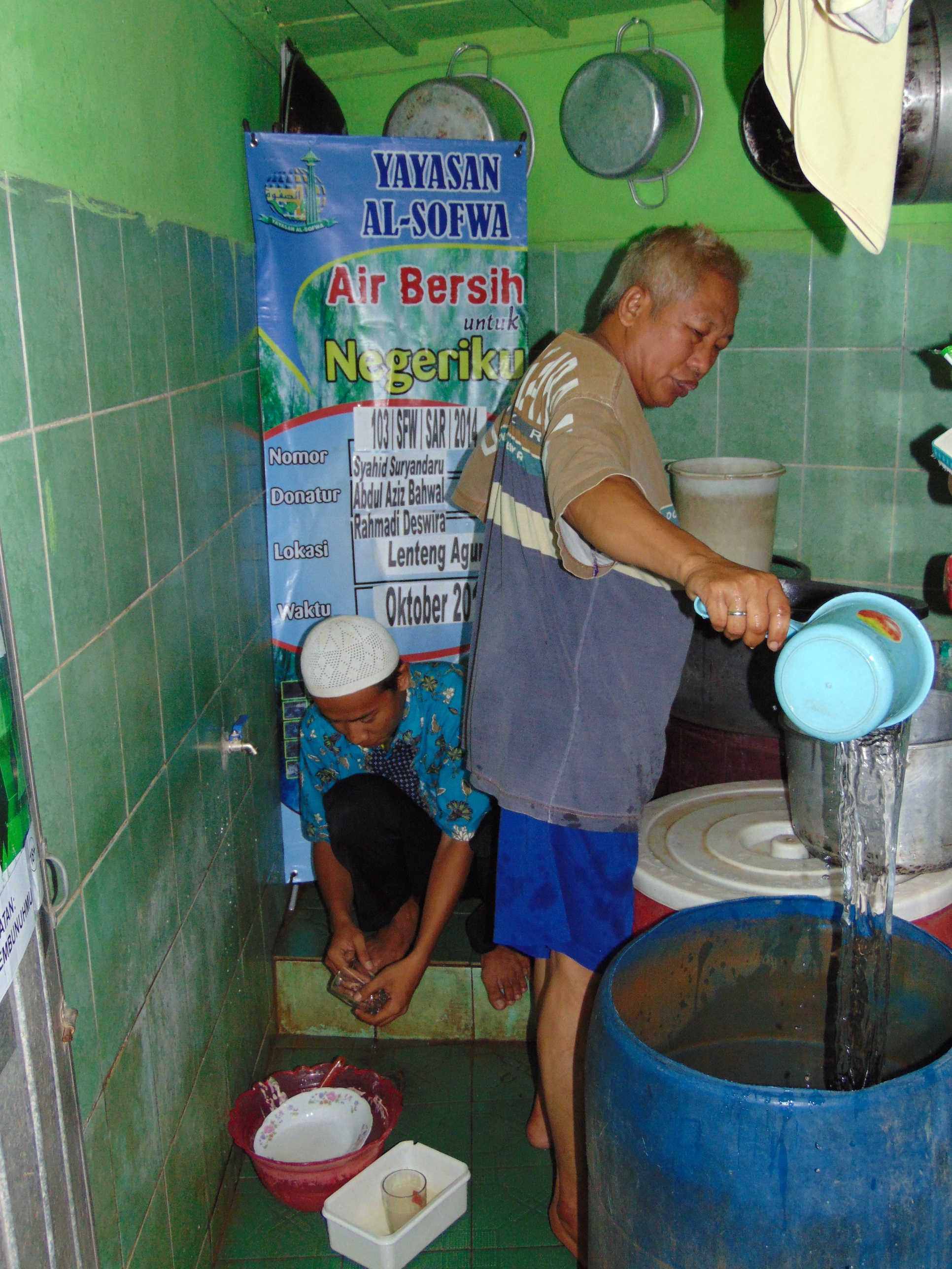 Kini Bapak Ali Werlan sudah tidak mandi di toilet Masjid Al-Sofwa setalah Yayasan Al-Sofwa memberikan bantuan untuk pembuatan sumur sebesar Rp. 2.125.000,- dengan dana bantuan tersebut Bapak Ali Werlan membuat sumur bor dengan kedalaman