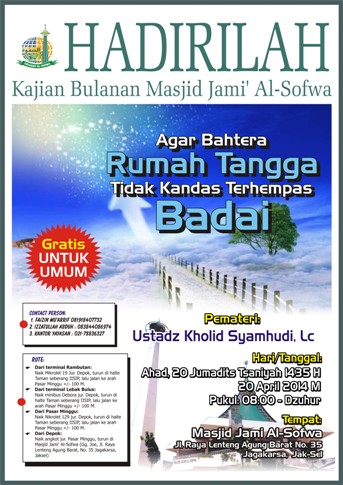 brosur200414H A D I R I L A H !!! Kajian Bulanan Masjid Jami’ Al-Sofwa