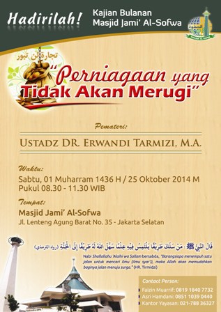 Hadirilah !!!   Kajian Bulanan Masjid Jami’ Al-Sofwa