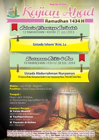 Hadirilah Kajian Tematik Ahad – Ramadhan 1434 H Masjid Jami’ Al-Sofwa