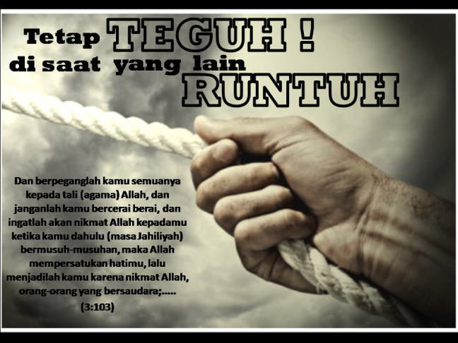 Maka berpegang teguhlah kamu kepada agama yang telah diwahyukan kepadamu. Sesungguhnya kamu berada di atas jalan yang lurus. Dan sesungguhnya Al-Qur’an itu benar-benar adalah suatu kemuliaan besar bagimu dan bagi kaummu, dan kelak kamu akan diminta pertanggung jawaban. (Az-Zuhruf: 43-44)