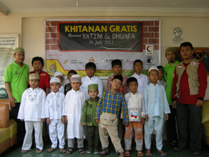 Depsos Al-Sofwa – Ahad, 30/06/2013 mungkin menjadi hari yang tidak terlupakan bagi 30 anak dhuafa dan yatim di sekitar wilayah Yayasan Al-Sofwa, karena pada hari itu mereka bangun pagi lalu segera menuju ke Yayasan Al-Sofwa untuk mengikuti acara khitan gratis yang diadakan oleh Yayasan Al-Sofwa. Pada acara khitan gratis ini tim dokter dan paramedik adalah dari tim Bulan Sabit Merah Indonesia (BSMI).