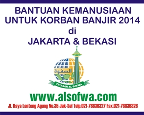 FLAG untuk webDepsos Al-Sofwa, Sudah satu bulan lebih musibah banjir melanda di wilayah JABODETABEK, penggalangan dana pun dilakukan untuk membantu meringankan penderitaan para korban banjir, baik atas nama lembaga ataupun perorangan, dan tidak luput pula Yayasan Al-Sofwa pun ikut serta dalam penggalangan dana untuk para korban banjir.