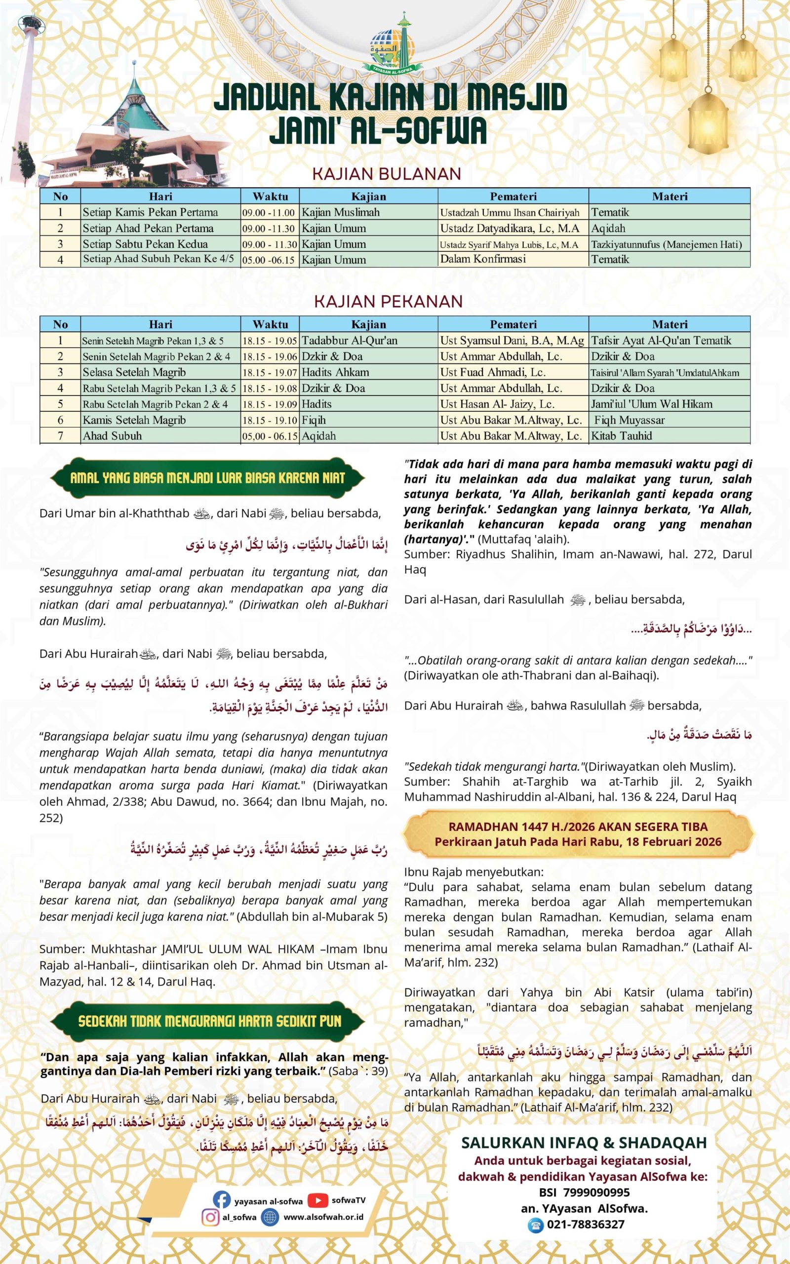 Kajian Rutin Masjid Jami’ Al-Sofwa Agenda Kajian Rutin Masjid Jami’ Al-Sofwa Jakarta JL. Raya Lenteng Agung Barat No. 35 Telp. (021) 788-36327