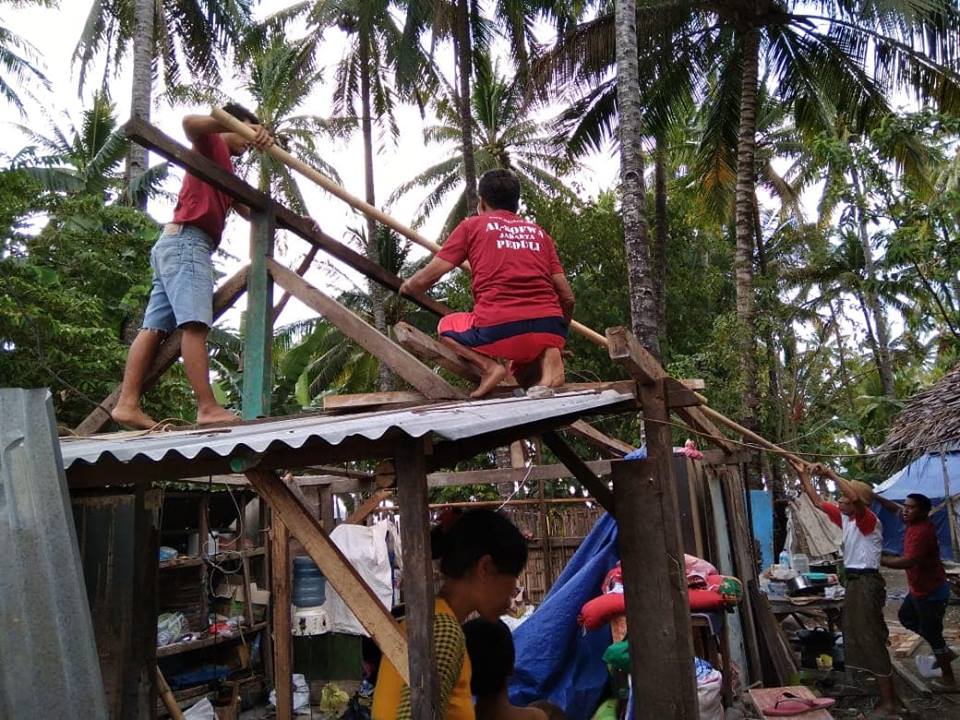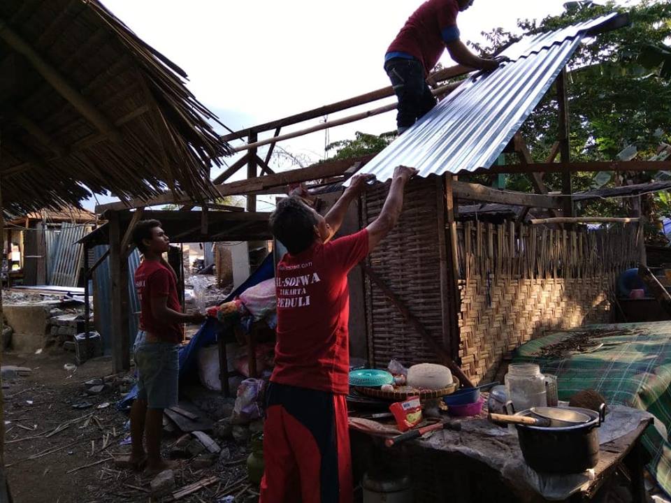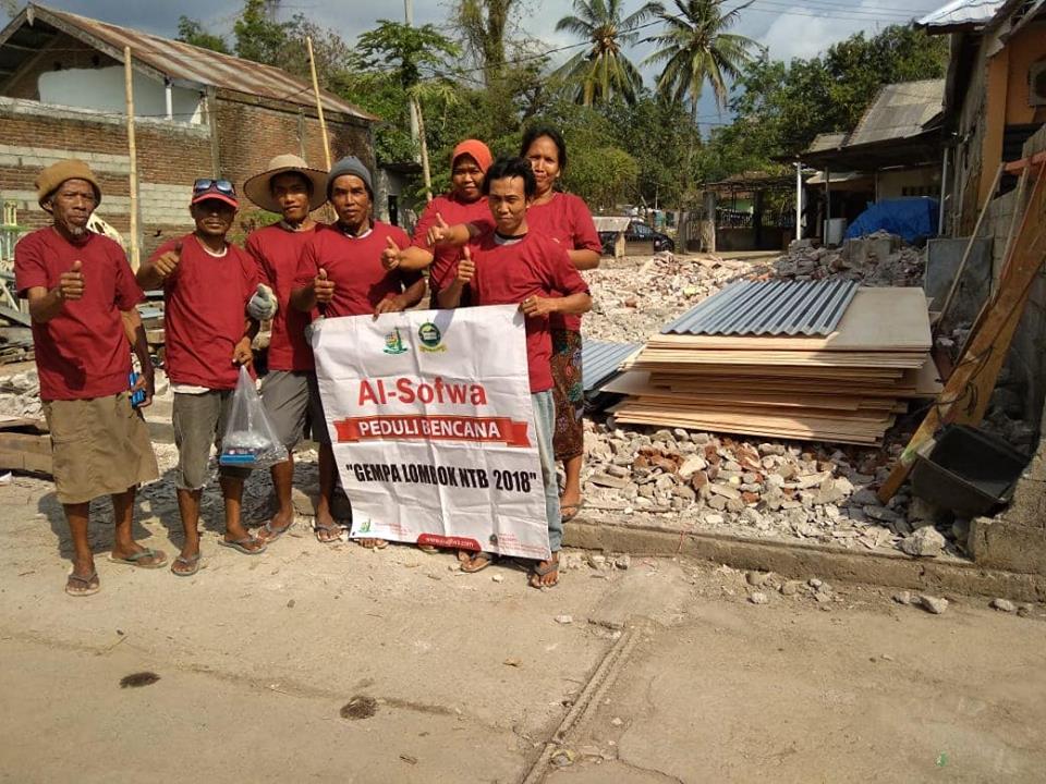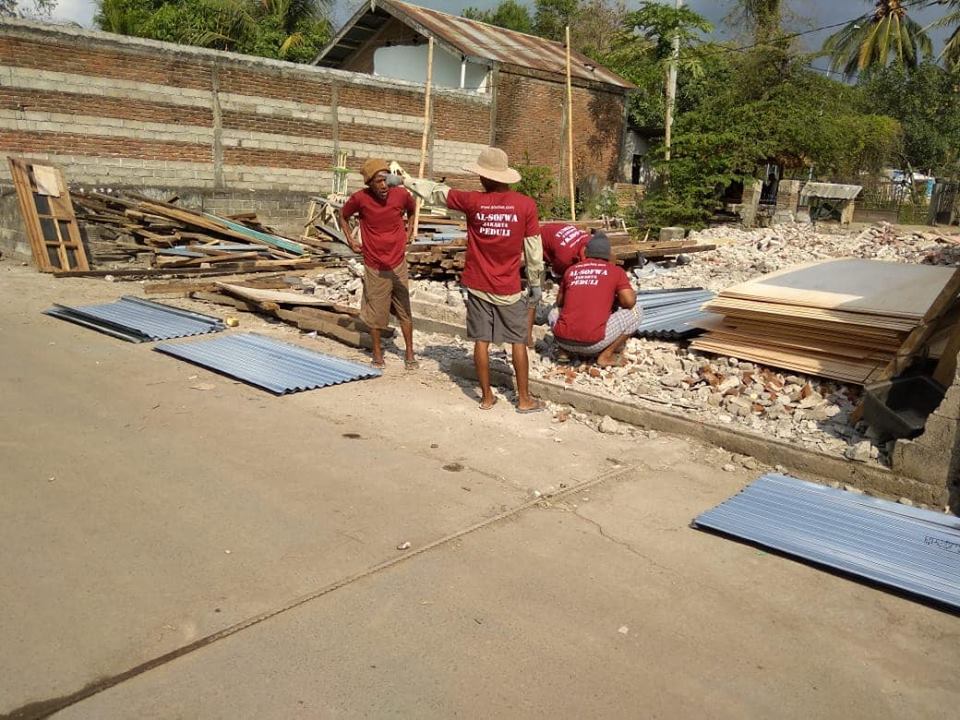 Relawan Al-Sofwa bersama warga setempat memulai membuat hunian sementara di Dusun Teluk Dalam Kren Medana Tanjung Lombok Utara NTB.