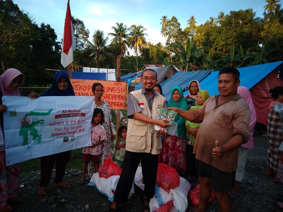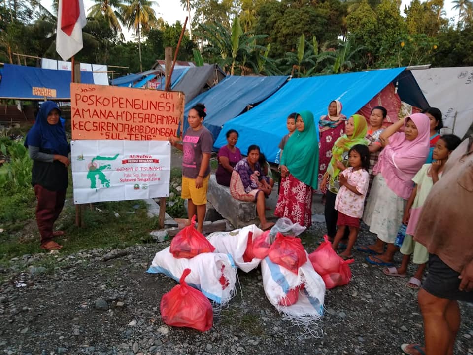 Pada Senin (3/12), dalam perjalanan ke Palu mengantar relawan asal Kotaraya Parigi Moutong, tim Al-Sofwa menyempatkan membagikan 30 paket bahan pangan kepada para pengungsi di Posko Amanah Desa Dampal Kecamatan Sirenja Kabupaten Donggala Sulteng.