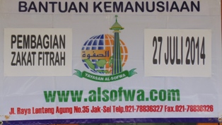 DSC00285Depsos Al-Sofwa, Alhamdulillah pada bulan Ramadhan 1435 H Yayasan Al-Sofwa mengadakan beberapa kegiatan sosial salah satunya pendistribusian zakat fithri dan bingkisan paket lebaran untuk dhuafa (27/7/14). Sejak sore hari ba’da shalat ashar, terlihat antusias dari warga Lenteng Agung khususnya warga Rt.011/01, Rt.007/01 dan Rt.008/01 yang sudah mengantri untuk menukarkan kupon zakat fithri yang telah mereka terima dari panitia pendistribusian zakat fithri.