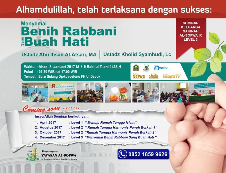 Program Seminar Keluarga Sakinah Al-Sofwa 2017 Posted by admin | Feb 13, 2017 | Berita Yayasan | 0 | Telah Dibaca: 578