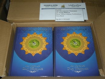 DSCN7540AAl-Sofwa – Program Wakaf Al-Qur’an Untuk Masjid, Lembaga Pendidikan dan Pondok Pesantren yang diprakarsai oleh Yayasan Al-Sofwa dan Perisai Qur’an Jakarta masih terus bergulir. Program ini merupakan secercah harapan bagi masjid/ lembaga pendidikan Islam yang sangat membutuhkan mushaf Al-Qur’an Al-Karim. Masih sering kita jumpai masjid/ musholla/ lembaga pendidikan Islam yang masih mempergunakan mushaf-mushaf yang sudah rusak, tidak lengkap halamannya dan tidak bersampul lagi. Kelemahan finansial terkadang menjadi kendala tersendiri bagi masjid/ lembaga untuk mengganti mushaf-mushaf yang sudah usang atau mengisi kekosongan mushaf.