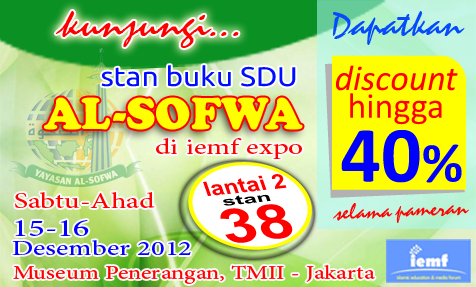 Dalam upaya menyemarakkan acara Islamic Education & Media EXPO (IEME) di museum penerangan TMII, Jakarta, tim buku SDU Al-Sofwa hadir dengan menampilkan produk dan program Departemen Pendidikan, Yayasan Al-Sofwa.