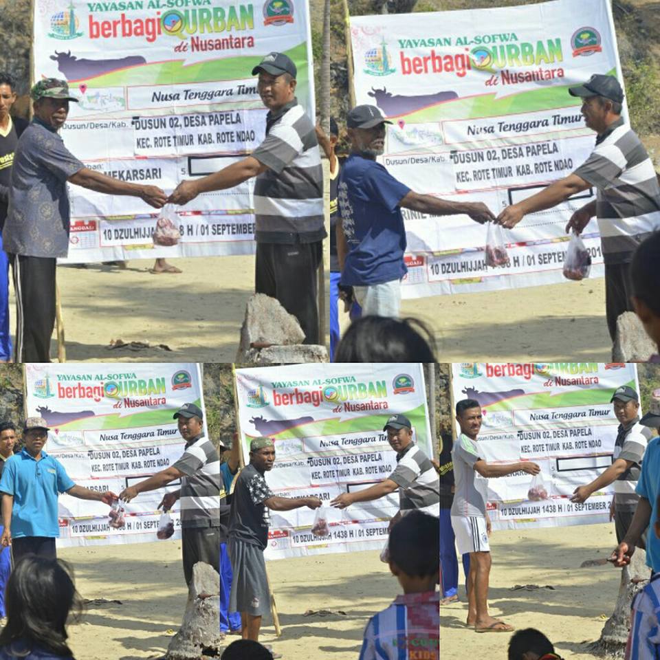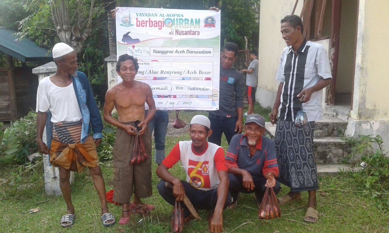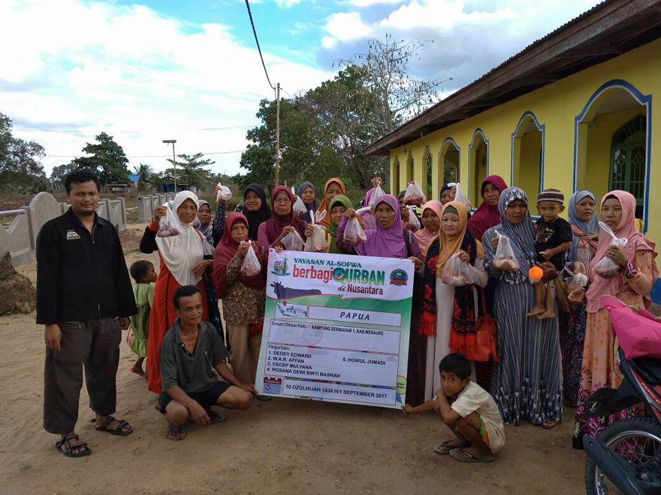 Kami, Yayasan Al-Sofwa, alhamdulillah dengan dibantu para dai dan relawan telah menyalurkan amanah hewan qurban dan daging qurban ke pelosok negeri. Menjumpai keluarga-keluarga muslim untuk melengkapi kebahagiaan hari raya dengan kantung-kantung daging qurban. Namun tak semua dari keluarga-keluarga muslimin itu yang mendapatkan kantung-kantung itu. Semoga pada tahun-tahun mendatang kami bisa menebusnya dan menyapa mereka dengan kantung-kantung daging qurban itu.