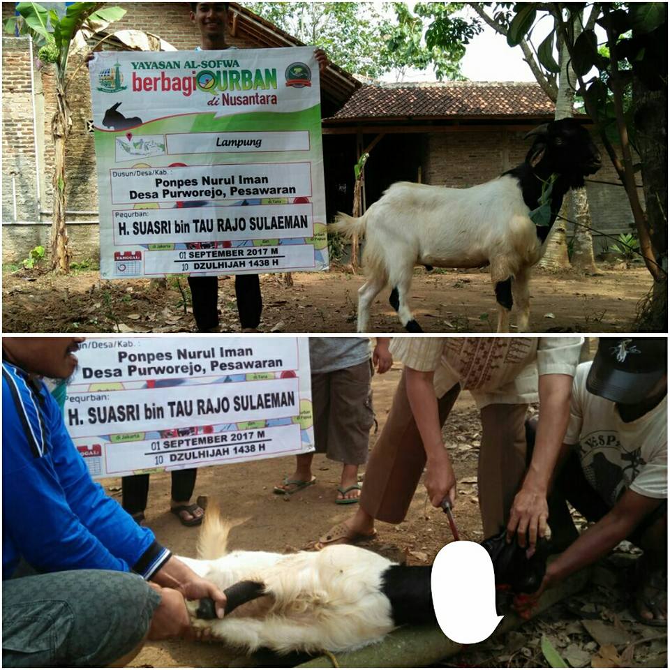 Para pembaca dan para pequrban yang dirahmati Allah, kami sampaikan bahwa pada Hari Raya Idul Adha tahun 1438H ini Yayasan Al-Sofwa telah menerima amanah dari *106 pequrban* untuk menyalurkan hewan qurban ke penjuru nusantara. Alhamdulillah dengan pertolongan Allah amanah tersebut tersampaikan dan diwujudkan dengan penyaluran hewan qurban sebanyak *12 sapi dan 60 kambing ke 19 propinsi di Indonesia*.