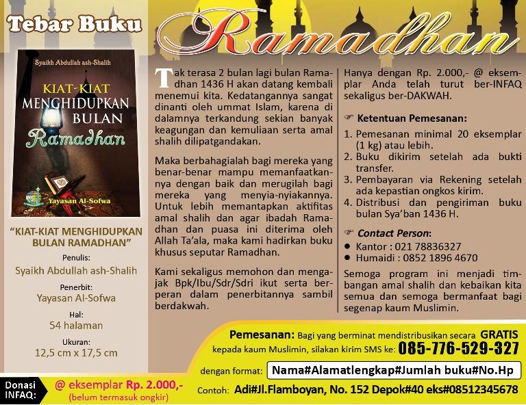 Donasi infaq: @ eksemplar Rp. 2.000,- (belum termasuk ongkir)